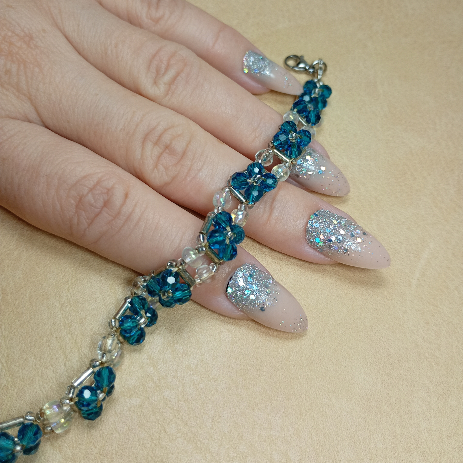 Se poate combina cu alte bijuterii argintii sau accesorii albastre