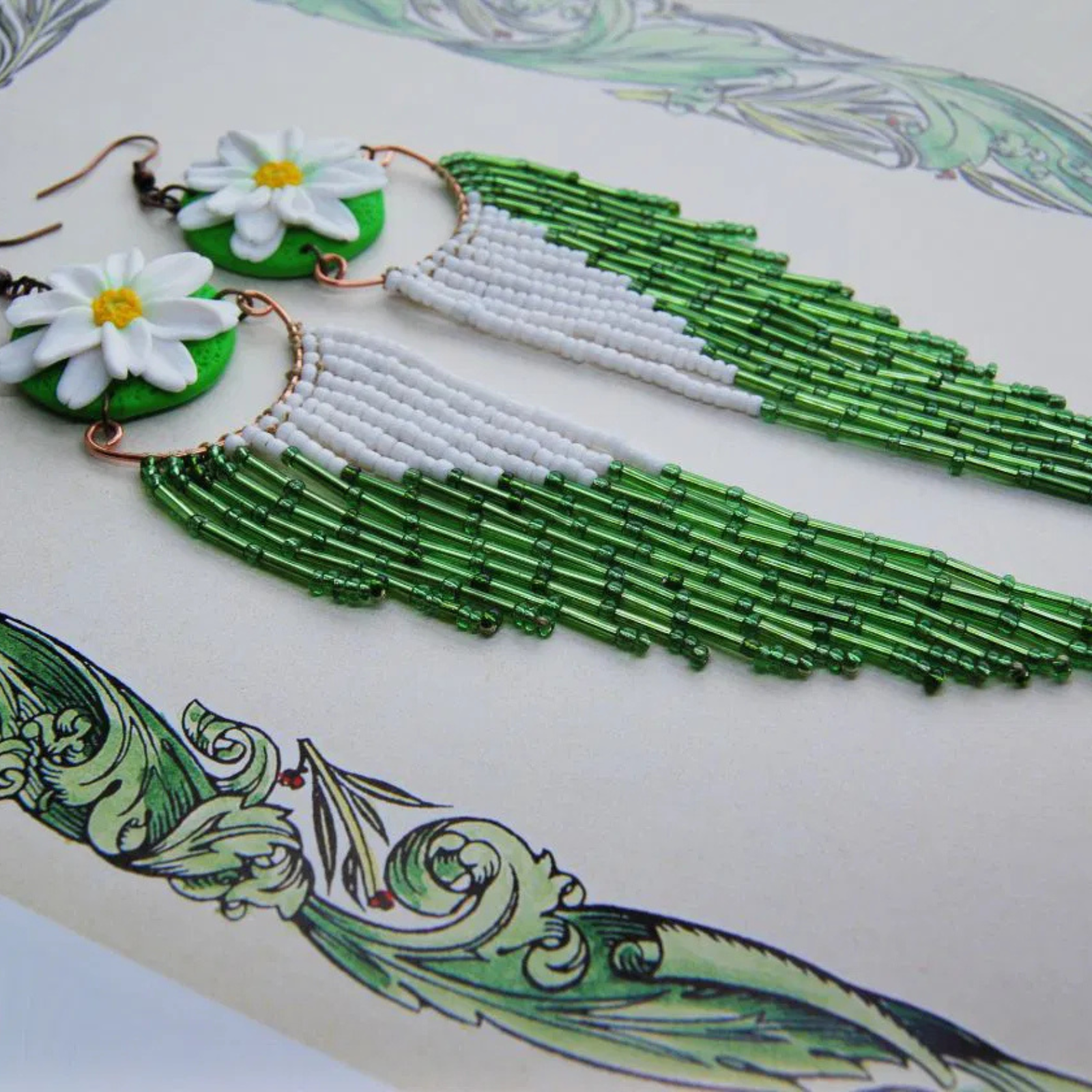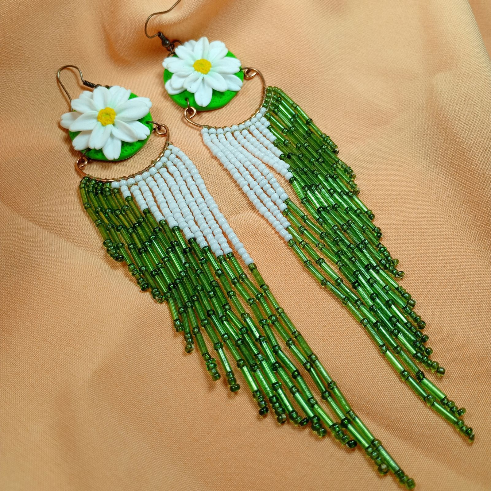 Realizați din materiale de calitate și decorați cu mărgele de sticlă și pigmenți subtili, cerceii sunt ideali pentru femeile care iubesc accesoriile florale cu personalitate.