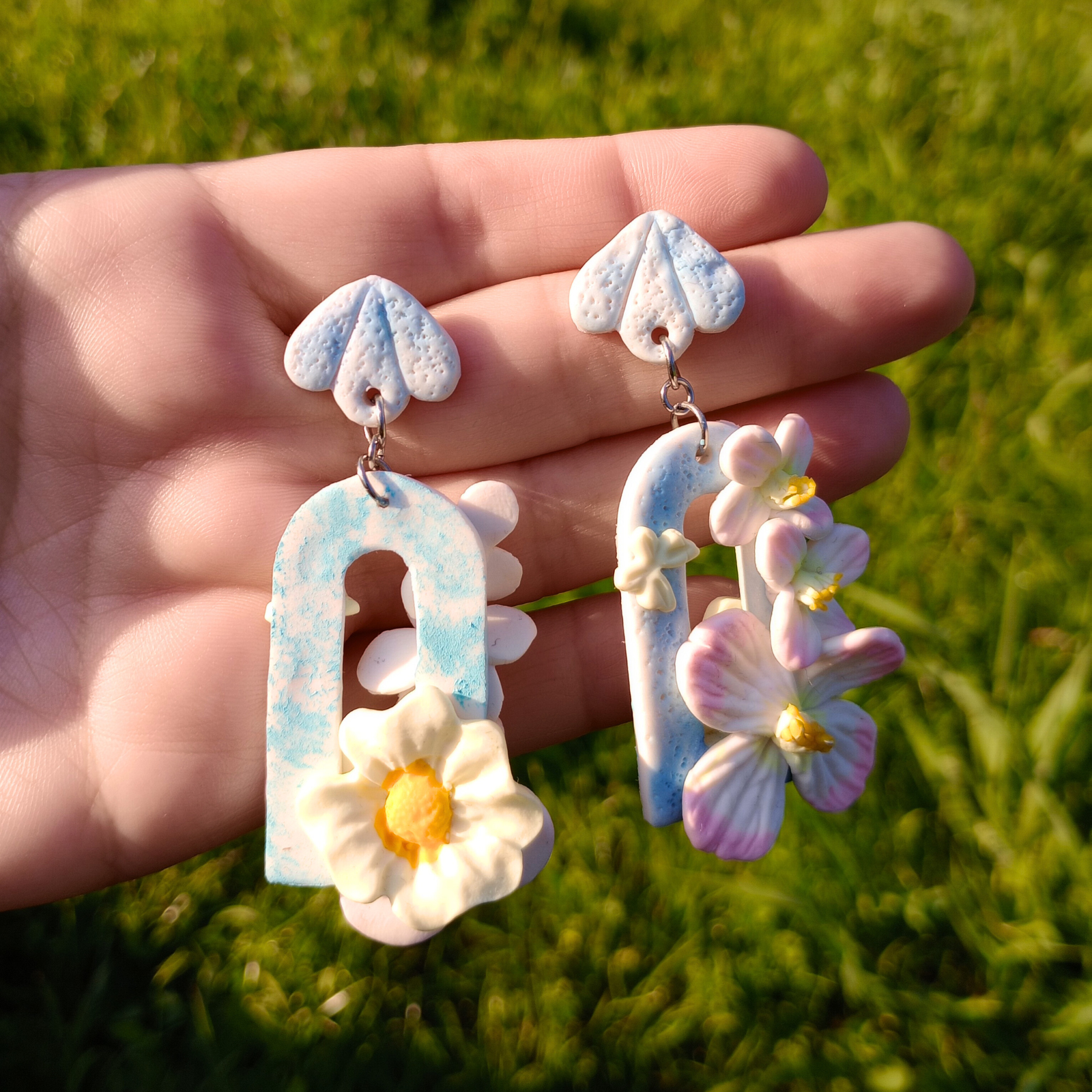 Acești cercei au două fețe spectaculoase și nu pot trece neobservați. Sunt modelați manual din argilă polimerică și pigmenți speciali, fiecare detaliu fiind realizat cu migală și intenție.