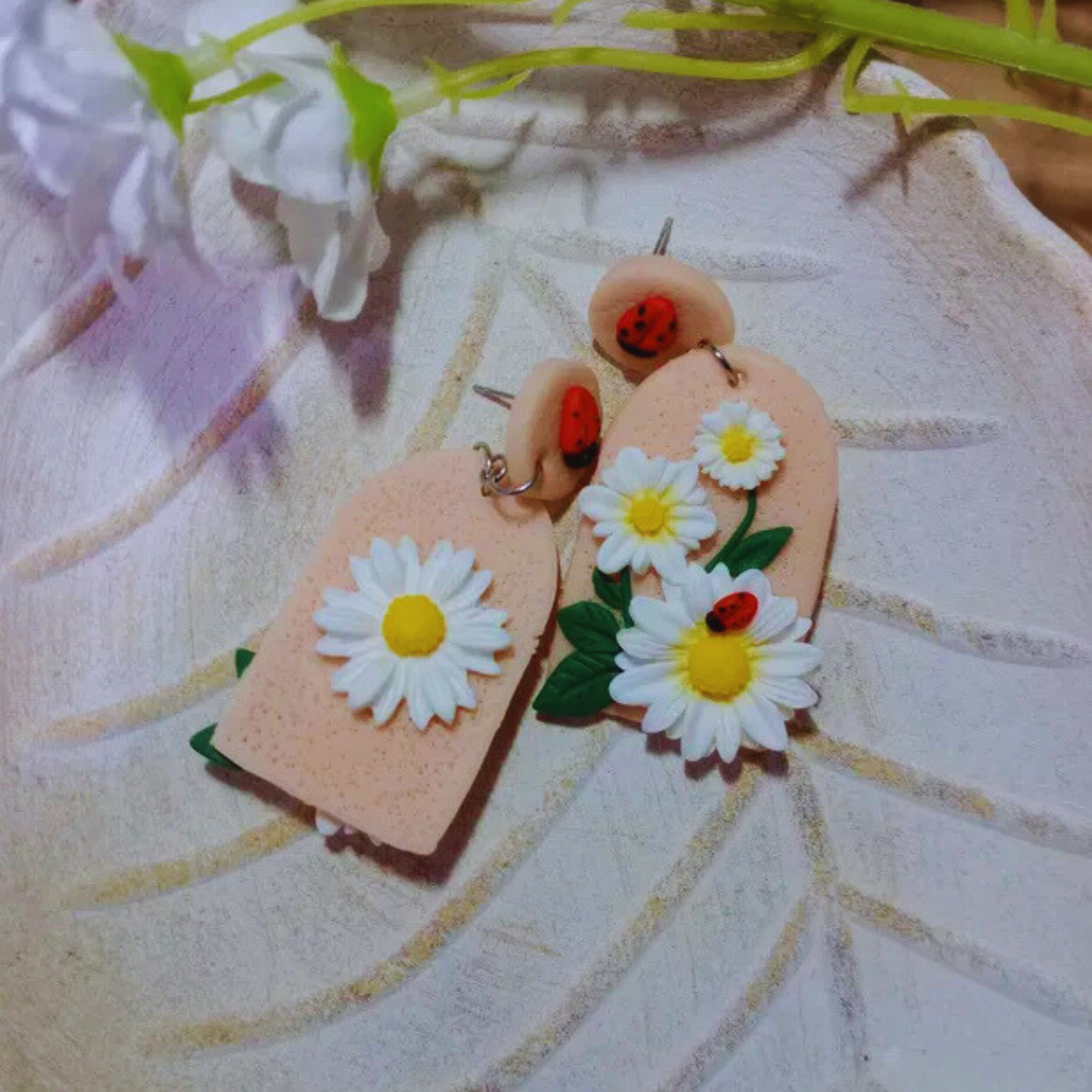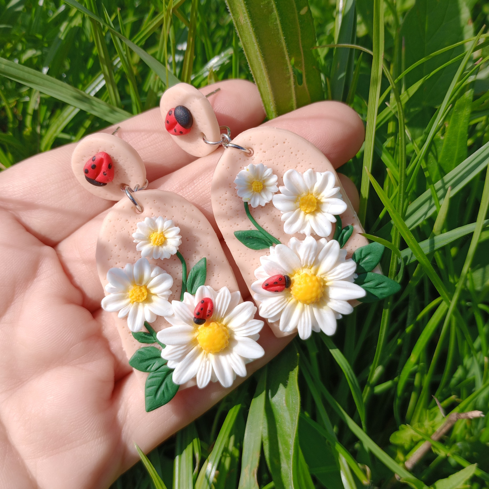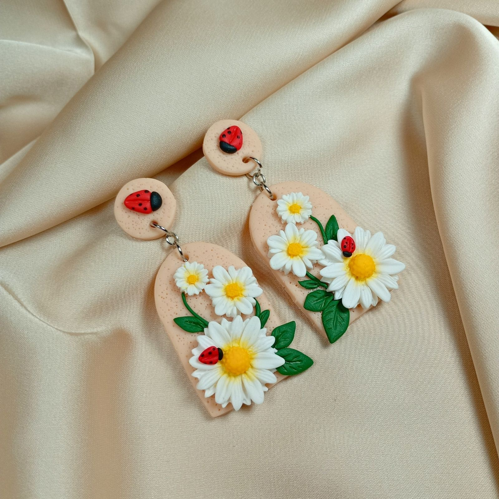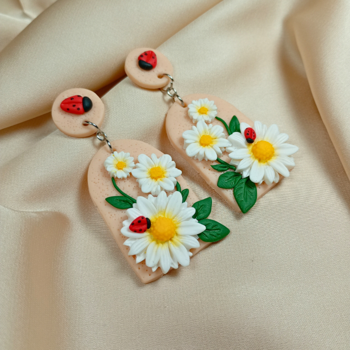 Acești cercei cu margarete și buburuze se potrivesc perfect cu ținute relaxate, precum jeans și un tricou simplu cu imprimeu floral sau bluză pastelată, aducând un accent jucăuș și natural. Poartă-i la plimbări în parc sau ieșiri cu prietenii pentru un vibe fresh de primăvară.