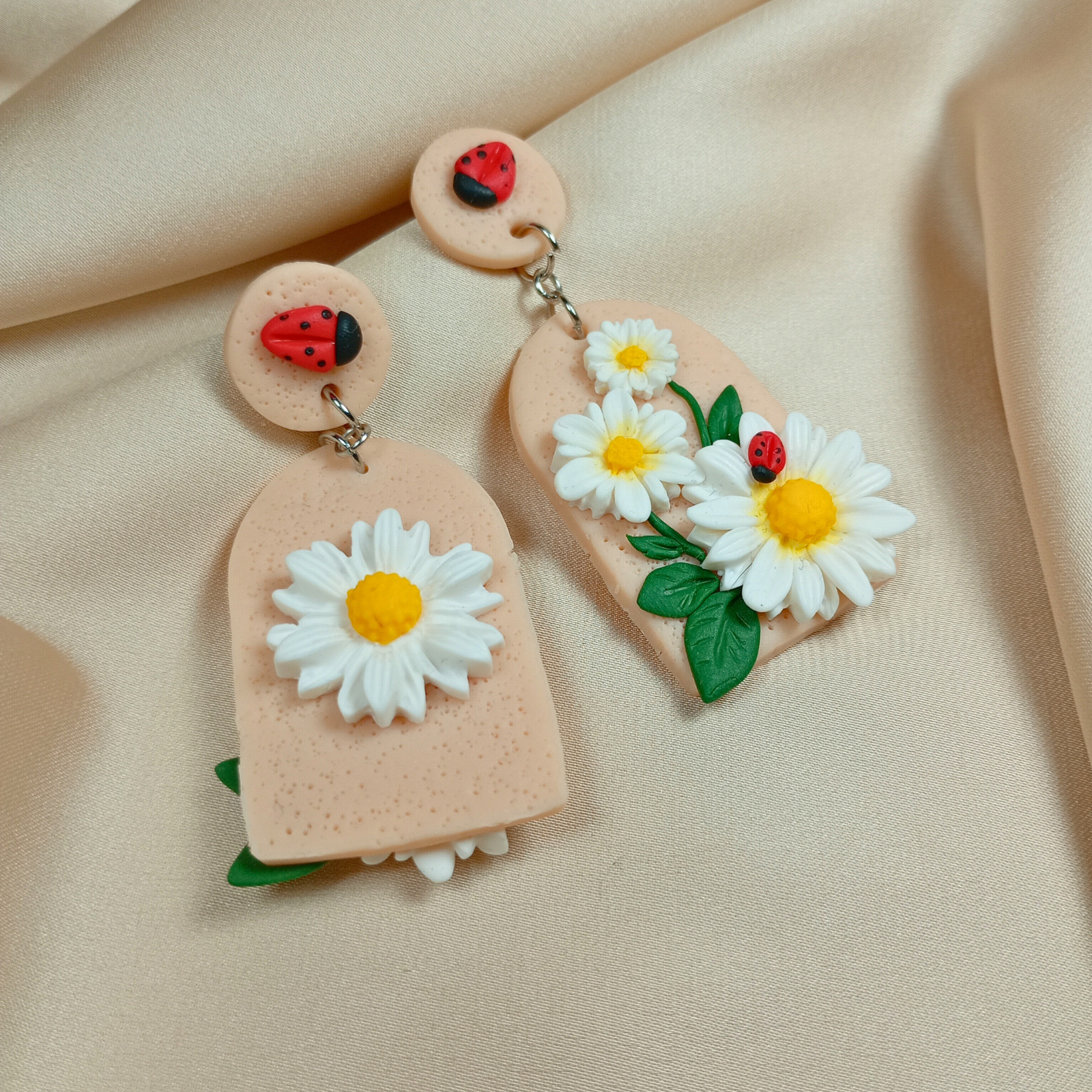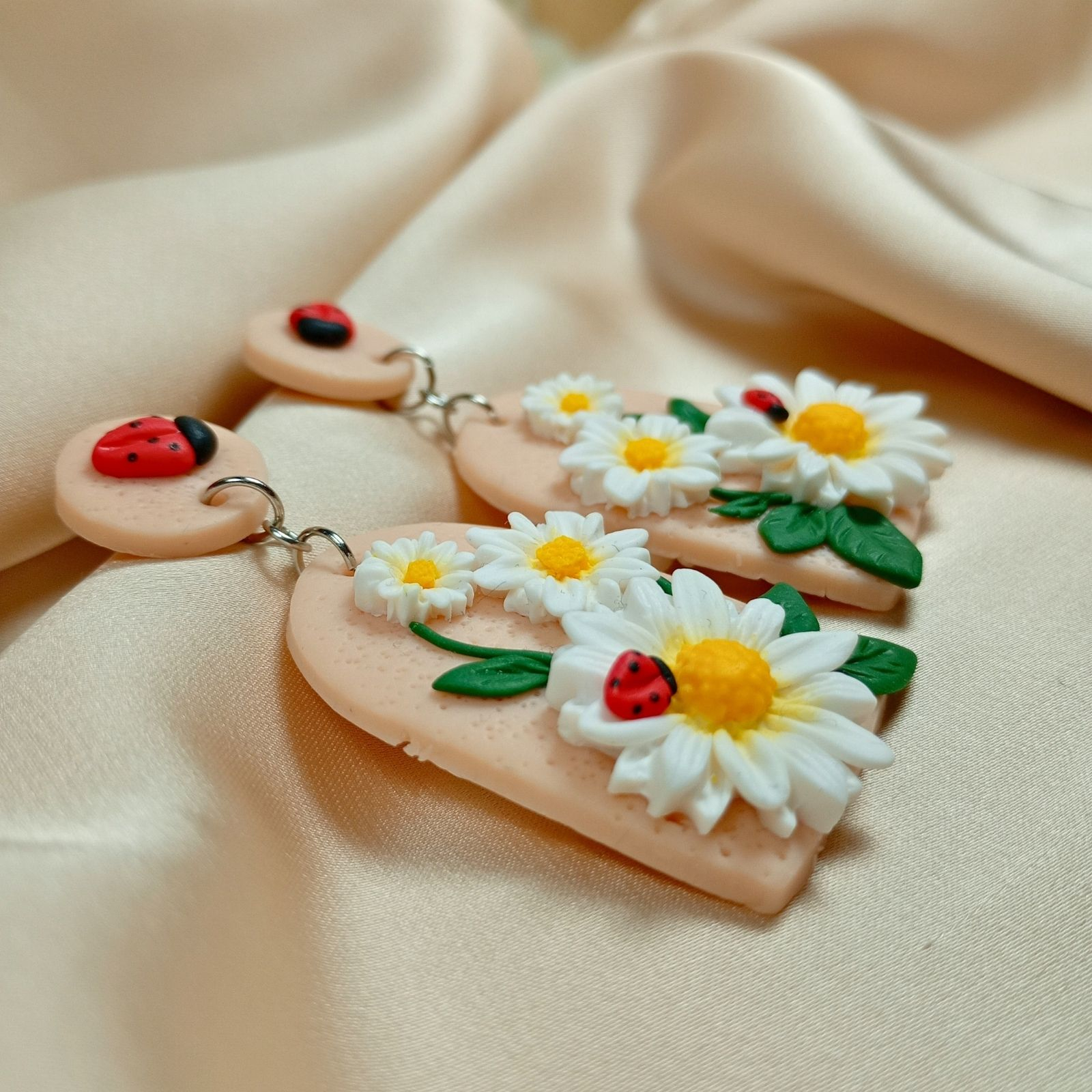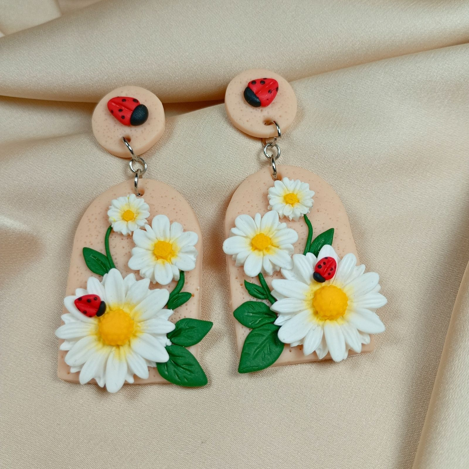 Acești cercei cu margarete și buburuze se potrivesc perfect cu ținute relaxate, precum jeans și un tricou simplu cu imprimeu floral sau bluză pastelată, aducând un accent jucăuș și natural. Poartă-i la plimbări în parc sau ieșiri cu prietenii pentru un vibe fresh de primăvară.
