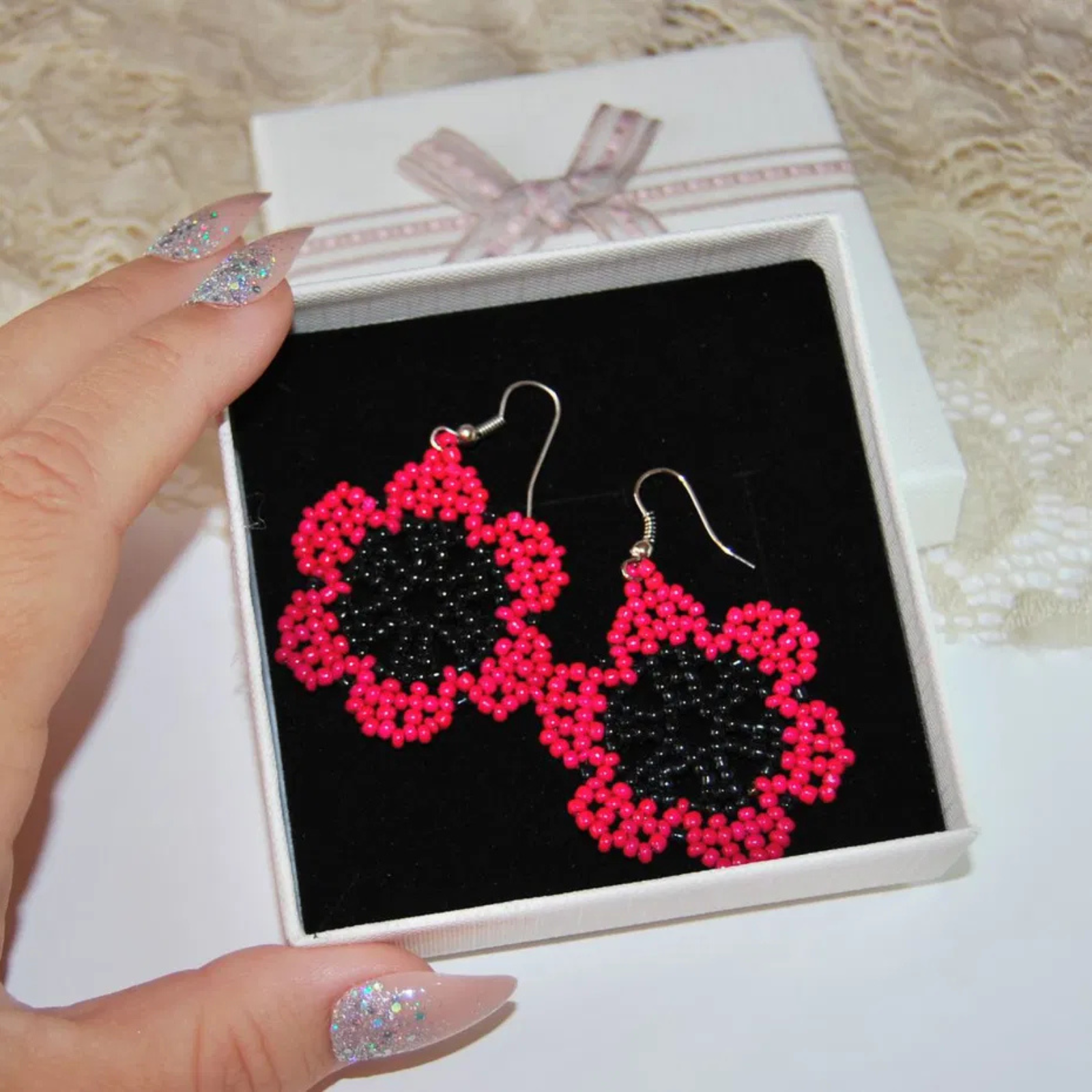 În cazul acestor cercei, ne inspirăm din această estetică – floră, culori intense, mărgele cusute – pentru a aduce un design handmade cu caracter.