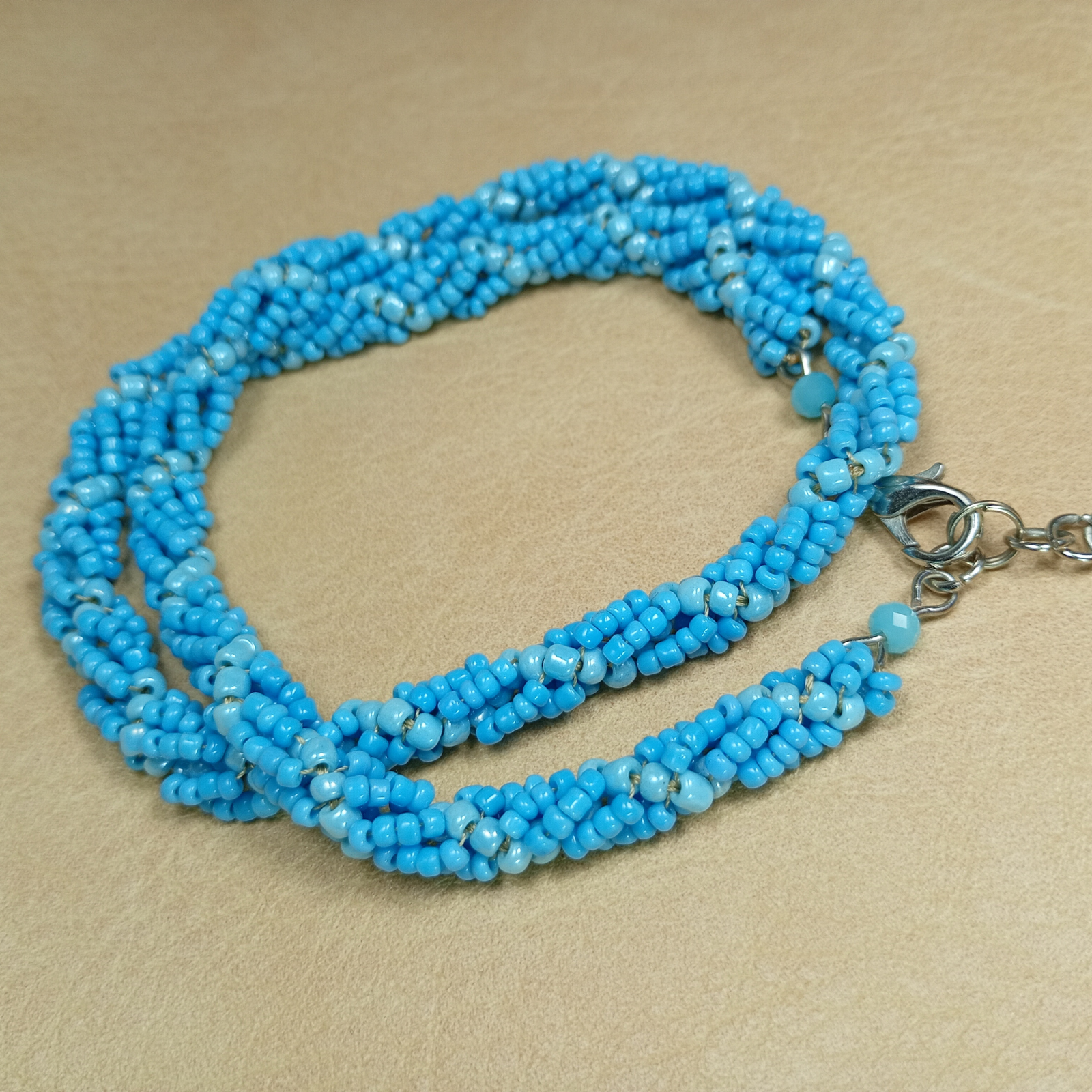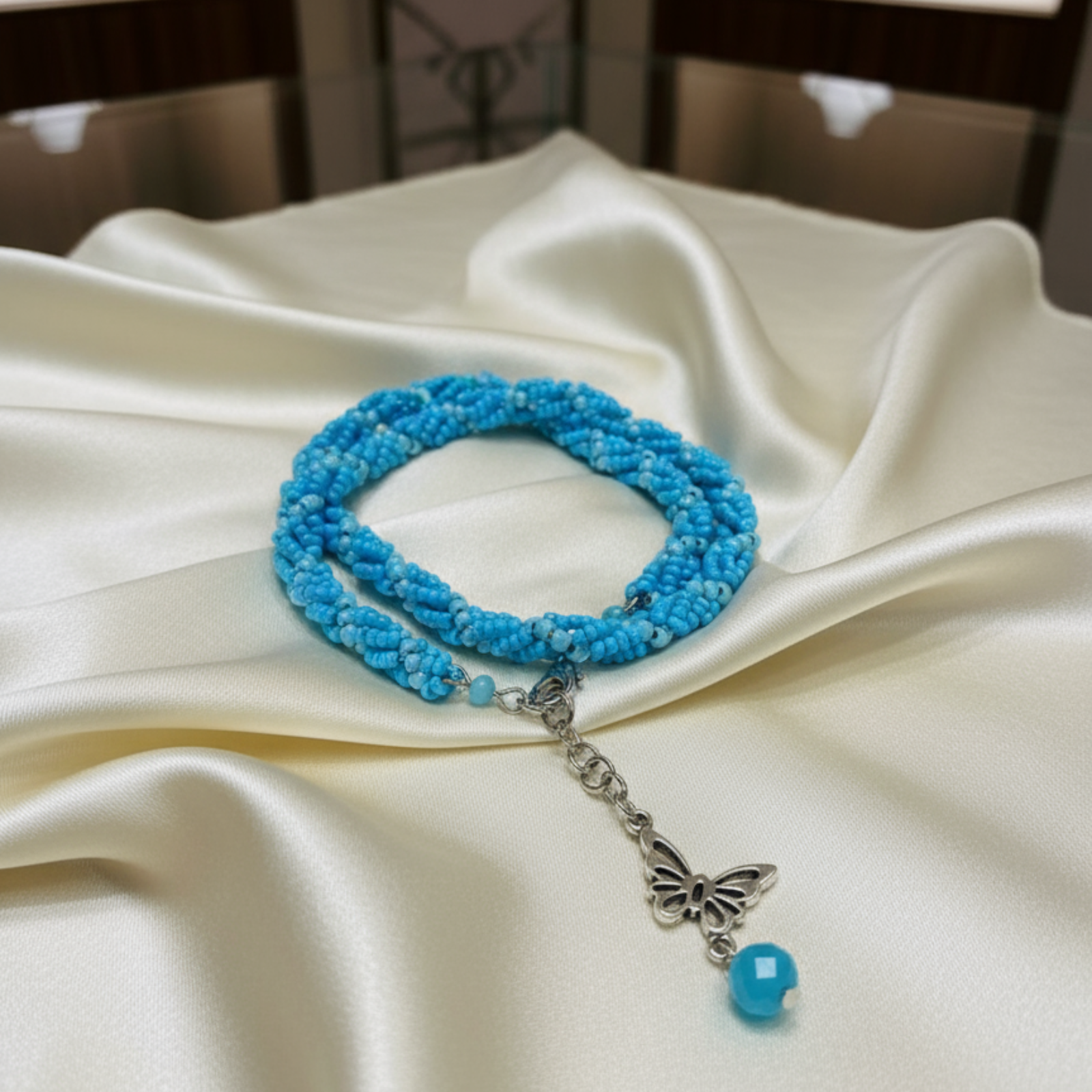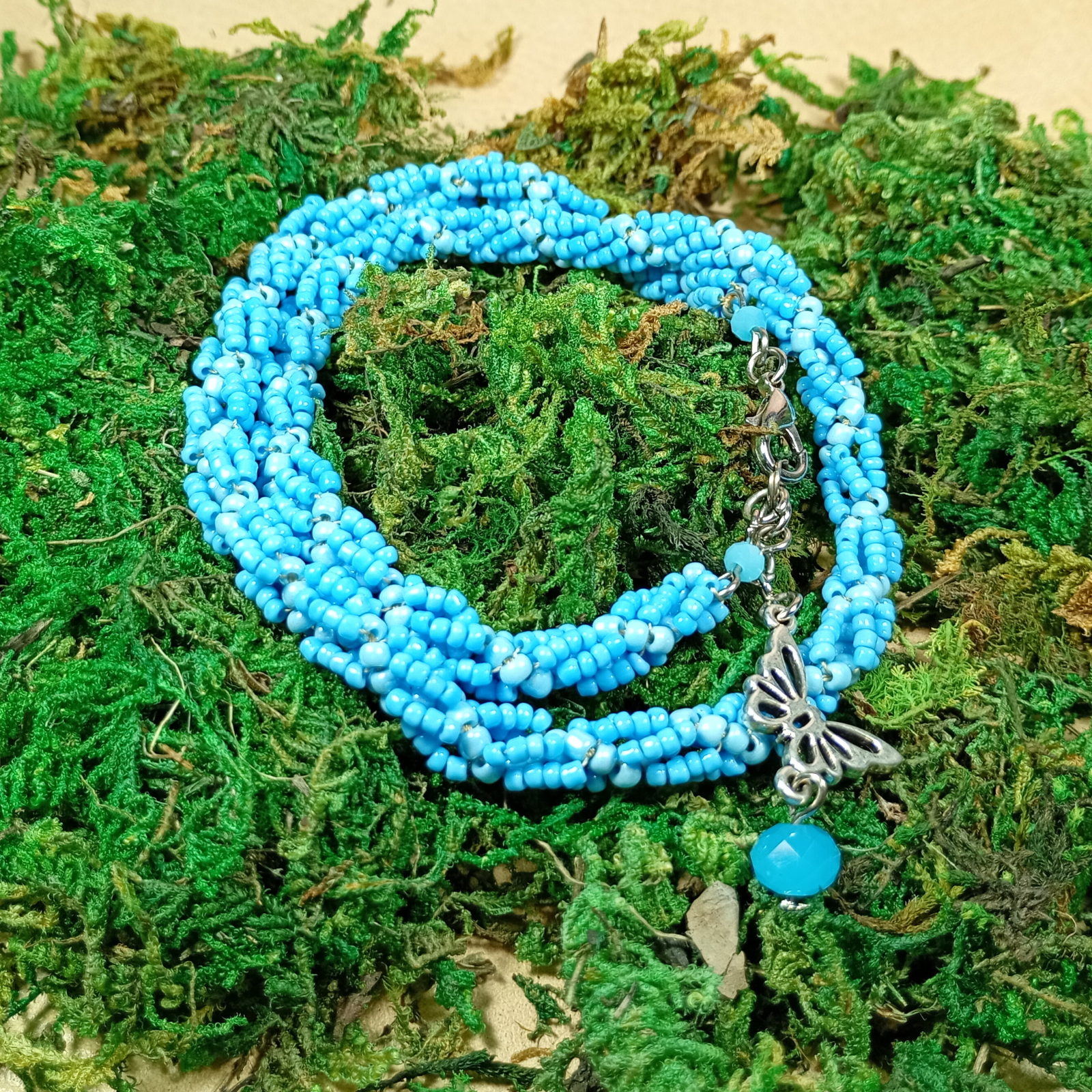 Descoperă frumusețea simplă și calmul cerului senin într-o bijuterie handmade. Colierul Albastru Senin este realizat manual din mărgele fine de sticlă cusute cu grijă