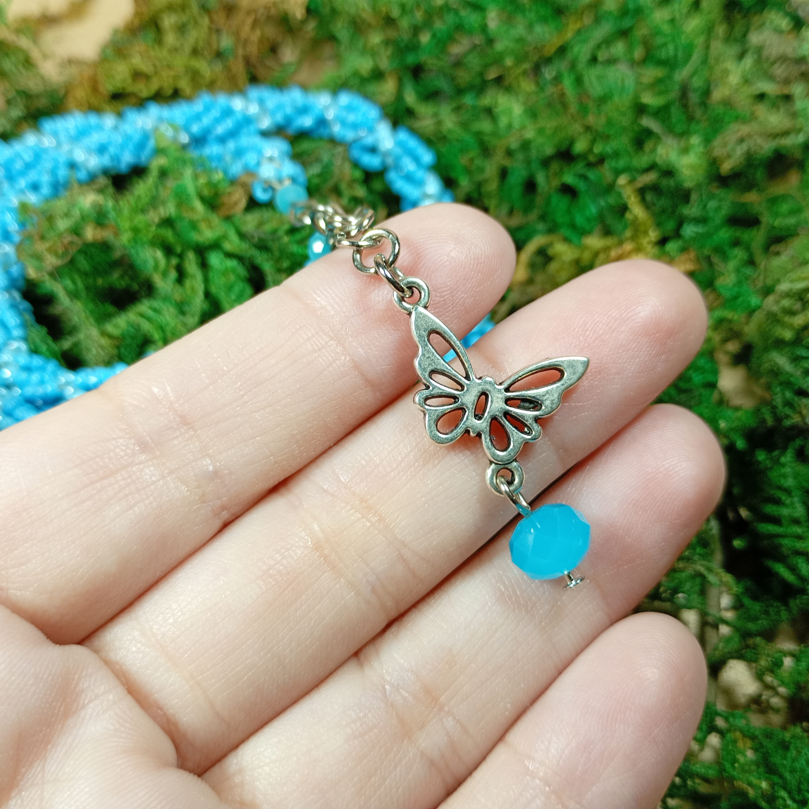 Materiale: mărgele din sticlă, element metalic fluture, cristal sticlă
