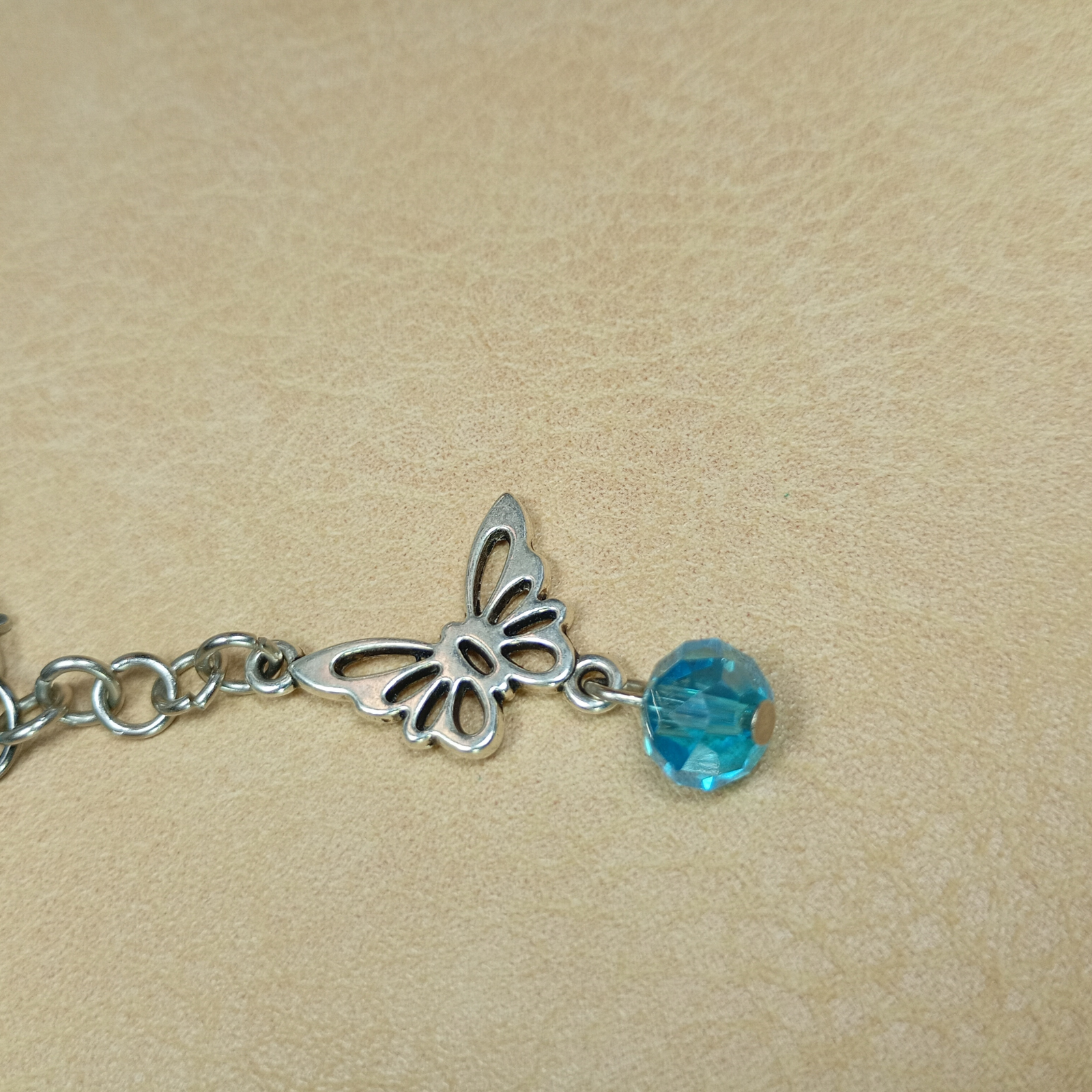 Închiderea cu fluturasul metalic adaugă o notă jucăușă și delicată, în timp ce detaliul din cristal de sticlă oferă un accent subtil de strălucire. Este un colier ușor de purtat, potrivit atât pentru ținute casual, cât și pentru momente speciale.