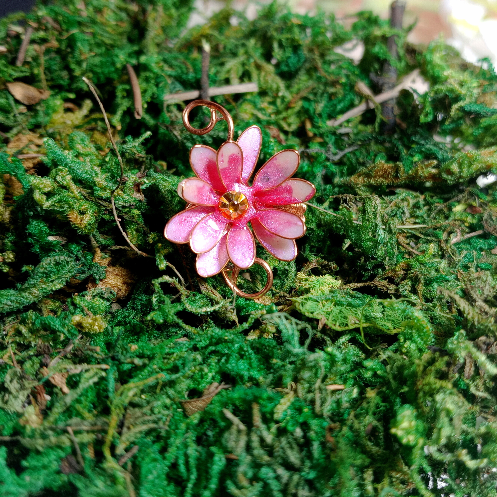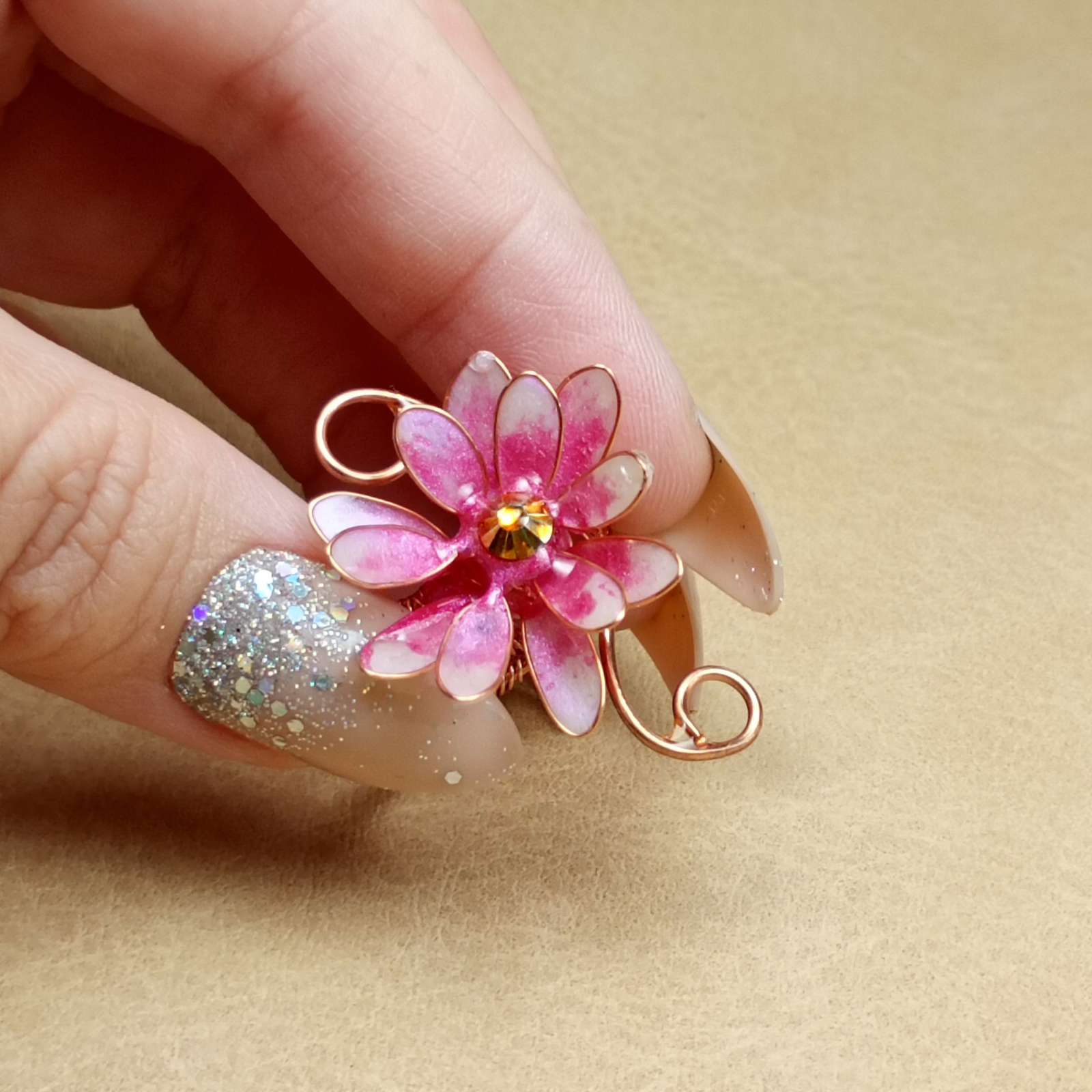 Acest inel delicat și feminin, cu o floare roz modelată manual, este creația ta în miniatură. Realizat cu atenție din rășină colorată și pigmenți, susținut de o sârmă de cupru fină și element metalic de suport, inelul îmbină textura florală cu eleganța minimalistă. Floarea roz oferă un accent romantic și luminos, perfect pentru a da culoare și suflet unei ținute simple.